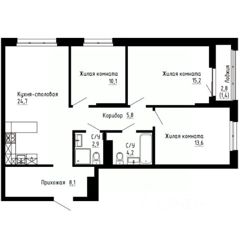 Продаётся 3-комнатная квартира в строящемся доме (Дом 2А), срок сдачи: I-кв. 2029, общей площадью 80.6 кв.м., на 19 этаже. Новый жилой комплекс "7Я" от застройщика "Новый Дом ДВ" расположен по адресу город Владивосток, Иртышская улица.