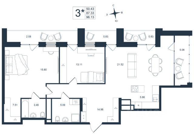 Продаётся 3-комнатная квартира в строящемся доме (Дом 1), срок сдачи: III-кв. 2027, общей площадью 57.85 кв.м., на 22 этаже. Новый жилой комплекс "Архитектор" от группы компаний "Девелопмент-Юг" расположен по адресу: г. Владивосток, по ул. Бежецкая.