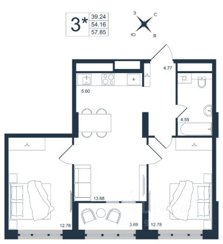 Продаётся 3-комнатная квартира в строящемся доме (Дом 1), срок сдачи: III-кв. 2027, общей площадью 57.85 кв.м., на 6 этаже. Новый жилой комплекс "Архитектор" от группы компаний "Девелопмент-Юг" расположен по адресу: г. Владивосток, по ул. Бежецкая.