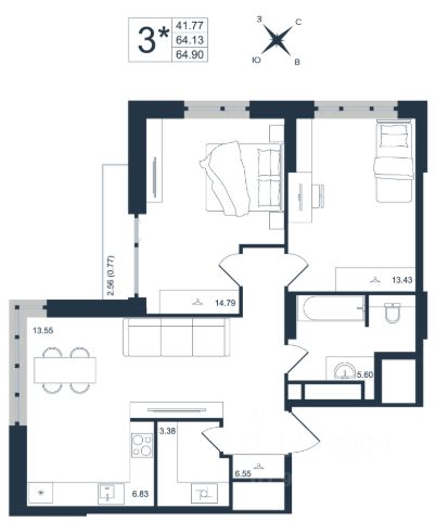 Продаётся 3-комнатная квартира в строящемся доме (Дом 1), срок сдачи: III-кв. 2027, общей площадью 75.02 кв.м., на 3 этаже. Новый жилой комплекс "Архитектор" от группы компаний "Девелопмент-Юг" расположен по адресу: г. Владивосток, по ул. Бежецкая.
