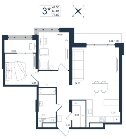 Продаётся 3-комнатная квартира в строящемся доме (Дом 1), срок сдачи: III-кв. 2027, общей площадью 73.74 кв.м., на 4 этаже. Новый жилой комплекс "Архитектор" от группы компаний "Девелопмент-Юг" расположен по адресу: г. Владивосток, по ул. Бежецкая.