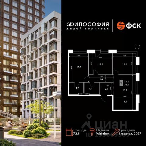 Прямая продажа от застройщика! Жилой Комплекс бизнес-класса. Продаётся 3-к квартира номер 404 общей площадью 79.1 кв.м. на 2-м этаже 10 этажного здания. Отделка Whitebox. Цена с учётом скидки. Особенности квартиры: - Мастер-зона с санузлом. Уют и комфорт в одном пространстве. - Угловая планировка - больше пространства для ваших идей. - Панорамное окно (1 и более) - раскрывает просторы вашего дома. - Угловое остекление - свет и воздушность в каждой комнате. - Кухня-гостиная - идеальное пространство для встреч с близкими. Квартира с предчистовой отделкой (White box). Вам не придется заниматься черновыми и трудоёмкими работы, а чистовую отделку и дизайн - сделайте на свой вкус. Информация о комплексе: В самом центре Владивостока рождается "Философия" - жилой комплекс бизнес-класса, вдохновлённый идеей гармонии. Семь тематических зданий складываются в единое произведение архитектуры, где каждая деталь продумана для вашего комфорта, вдохновения и покоя. Транспортная доступность: - 15 мин. пешком до Пушкинского театра и музейно-театрального центра на Орлиной сопке - 15 мин. пешком до Набережной Цесаревича - 5-10 мин. на машине до парка Минного городка -