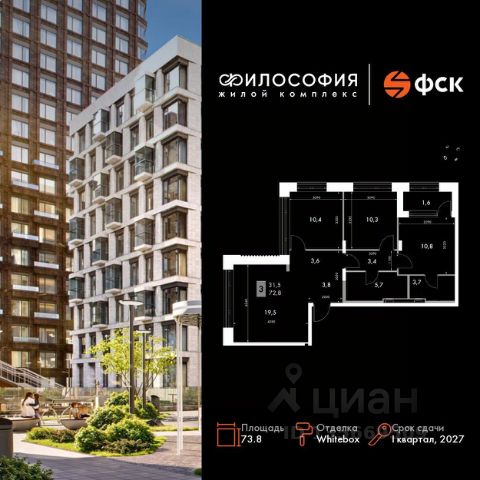 Прямая продажа от застройщика! Жилой Комплекс бизнес-класса. Продаётся 3-к квартира номер 21 общей площадью 73.8 кв.м. на 4-м этаже 14 этажного здания. Отделка Whitebox. Цена с учётом скидки. Особенности квартиры: - Мастер-зона с санузлом. Уют и комфорт в одном пространстве. - Угловая планировка - больше пространства для ваших идей. - Просторная ванная - место для расслабления и уединения. - Возможность установить вторую раковину или биде - удобство для всей семьи. - Кухня-гостиная - идеальное пространство для встреч с близкими. - Тёплая лоджия - пространство для отдыха в любое время года. Квартира с предчистовой отделкой (White box). Вам не придется заниматься черновыми и трудоёмкими работы, а чистовую отделку и дизайн - сделайте на свой вкус. Информация о комплексе: В самом центре Владивостока рождается "Философия" - жилой комплекс бизнес-класса, вдохновлённый идеей гармонии. Семь тематических зданий складываются в единое произведение архитектуры, где каждая деталь продумана для вашего комфорта, вдохновения и покоя. Транспортная доступность: - 15 мин. пешком до Пушкинского театра и музейно-театрального центра на Орлиной сопке - 15 мин. пешком до Набережной Цесаревича - 5-10 мин. на машине до парка Минного городка -