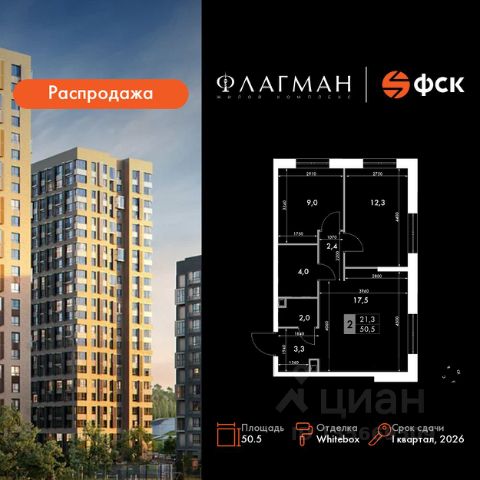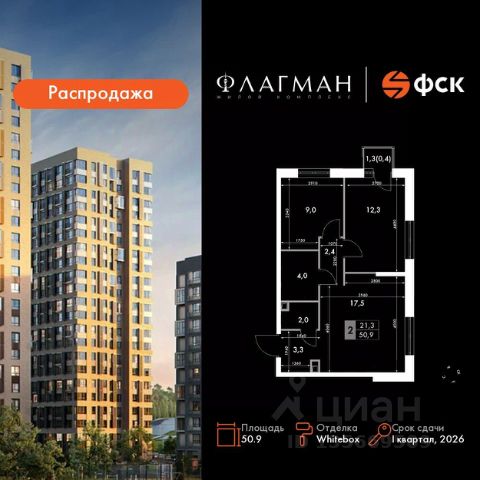 Квартиры от застройщика! Современный жилой комплекс комфорт-класса в развитом районе города. Продаётся 3-к квартира номер 126 общей площадью 50.9 кв.м. на 12-м этаже 24 этажного здания. Отделка Whitebox. Цена с учётом скидки. Особенности квартиры: - Угловая планировка - больше пространства для ваших идей. - Гостевой санузел - комфорт и удобство для ваших гостей. - Евроформат - просторное и удобное жилье с отличной планировкой. - Просторная кухня - место для семейных ужинов и кулинарных экспериментов. - Ниша под шкаф - компактное и удобное место для вещей. - Балкон - открытое пространство для отдыха. Квартира с предчистовой отделкой (White box). Вам не придется заниматься черновыми и трудоёмкими работы, а чистовую отделку и дизайн - сделайте на свой вкус. Информация о комплексе: Жилой комплекс "Флагман" - это сочетание продуманной архитектуры, качественных материалов и развитой инфраструктуры. Проект реализован в едином архитектурном стиле: современные фасады, аккуратные линии и внимание к деталям формируют выразительный облик района. Закрытые дворы, озеленение и приватные пространства создают ощущение уюта и защищенности в городской среде. Комплекс расположен в районе с уже сложившейся социальной и коммерческой инфраструктурой, что делает его удобным для жизни без необходимости долгих поездок. Транспортная доступность: - 9 мин. пешком до детского сада - 7 мин. до школы - 5 мин. до взрослой поликлиники - 1 мин. до автобусной остановки Внутренняя инфраструктура: Территория проекта спроектирована с учетом повседневных сценариев жизни. Закрытые дворы оборудованы современными детскими и спортивными площадками. В домах предусмотрены колясочные и кладовые помещения. Входные группы выполнены на уровне земли без ступеней и пандусов, что обеспечивает комфорт для семей с детьми, пожилых людей и маломобильных жителей. Для автомобилистов предусмотрен одноэтажный паркинг с автоматической мойкой. На первых этажах домов размещены коммерческие помещения с магазинами и сервисами первой необходимости, формирующие удобную среду прямо у дома.