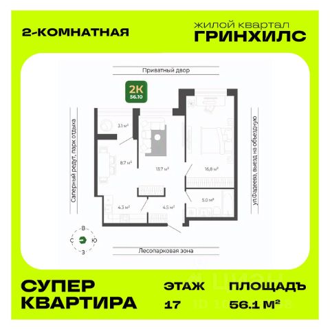 Преимущества: - панорамное остекление балконов; - высота потолков 2,9 м; - оконное остекление увеличенного размера; - широкие коридоры в местах общего пользования; - отапливаемый паркинг; - закрытая территория; - развитая инфраструктура района; - высокая транспортная доступность. Подробнее о ЖК "Горизонт": Жилой комплекс с высокой транспортной доступностью и развитой социальной инфраструктурой микрорайона Баляева состоит из двух 19-этажных корпусов с 3-уровневым отапливаемым подземным паркингом, индивидуальными келлерами на каждом этаже, закрытой придомовой территорией и комплексным видеонаблюдением. Концепция комплекса предусматривает организацию внутреннего двора без машин. Увеличенная территория комфорта представляет собой единое пространство для отдыха с детскими и спортивными площадками, зелёным сквером и элементами ландшафтного дизайна. Квартиры формата Smart Comfort + (смарт-комфорт +) площадью от 32,77 кв. м до 57,45 кв. м предоставляют свободу в реализации планировочных решений, а высота потолков 2,9 м с окнами увеличенного размера и панорамным остеклением балконов обеспечивают высокий уровень естественного освещения и открывают панорамный обзор на город, Амурский залив и Русский мост. Проектом предусмотрены широкие коридоры мест общего пользования 2,82 м и просторный вестибюль площадью 16,34 кв. м. Инвестиционную привлекательность обеспечивает возможность приобретения коммерческой недвижимости со стабильным потоком клиентов для организации бизнеса или сдачи пространств в аренду. Комплекс расположен в непосредственной близости от главной дорожной развязки "Площадь Луговая 3-я рабочая Рудневский мост", остановка "Сельская" в 4 минутах (350 метров) ходьбы, "Баляева" в 3 минутах (350 метров). В пешей доступности: детский сад, средняя школа, лицей, университет, супермаркет, торговый центр, аптека, поликлиника, стоматология, автомобильный сервис, АЗС, фитнес-клуб, школа верховой езды и парк Минного городка.