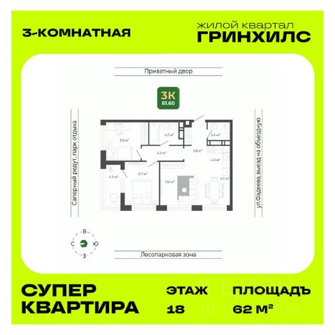 Продается 3-к квартира в ЖК "Гринхилс". Отделка - whitebox, санузел - под ключ. Общая площадь квартиры — 62 кв. м, этаж 4 из 18. Тип дома — монолитный. Цена указана при 100% оплате. ЖК "Гринхилс" — жилой квартал комфорт-класса в выгодной локации микрорайона Зеленый угол: развивающегося современного жилого кластера во Владивостоке, внутри которого реализуются проекты нового поколения, преобразуя город. Полный набор необходимой инфраструктуры, транспортная доступность, исторические места города в шаговой доступности, а также окружение леса — все это и есть современный Зеленый угол. ТРАНСПОРНАЯ ДОСТУПНОСТЬ - 15 минут до центра; - 17 минут до ж/д вокзала; - 10 мин до пляжа Патрокл*; - 30 минут до автовокзала; - 50 минут до аэропорта. *В конце 2025 года планируется ввод дороги, соединяющей район с объездной Седанка-ДеФриз-Патрокл. ПЛАНОВЫЙ ВВОД В ЭКСПЛУАТАЦИЮ - 1 корпуса — 2 квартал 2026 года; - 2 и 3 корпусов — 2 квартал 2027 года. АРХИТЕКРУРНЫЕ И ИНЖЕНЕРНЫЕ РЕШЕНИЯ, ПОВЫШАЮЩИЕ КАЧЕСТВО ЖИЗНИ - Приватный безопасный каскадный двор-парк площадью более 4000м2, спроектирован как отдельный архитектурный объект с зонами, включающими в себя целый комплекс оборудования для детей и взрослых, озеленением и современным освещением, благодаря которому будет приятно гулять и отдыхать во дворе в вечернее и ночное время; - Доступ на территорию всего ЖК только для вас и ваших гостей; - Видеонаблюдение по периметру всего ЖК, безбарьерный доступ в дом с обеих сторон и современная домофония; - Дизайнерская отделка мест общего пользования, чтобы было приятно каждый раз, когда приходишь к себе домой; - Предусмотрено место для консьержа, а также туалеты на первых этажах для вашего комфорта; - Колясочные и три современных лифта c прямым доступом к индивидуальным кладовым и паркингу; - Трехэтажный приватный паркинг в 3-м корпусе: широкие проезды, индивидуальные машиноместа, безопасное и комфортное хранение вашего автопарка. МНОЖЕСТВО ПЛАНИРОВОЧНЫХ РЕШЕНИЙ И ВАРИАНТОВ ОТДЕЛКИ - Студии, 1к, 2к, 3к, 4к и квартиры евро-формата спроектированных по стандарту "Эргом2етрика", учитывающие различные сценарии жизни. Для вашего удобства для каждого варианта планировки вы можете выбрать подходящую готовности квартиры: - Без отделки; - Без отделки с выполненной стяжкой пола; - Whitebox — квартира, готовая к декорированию: стены подготовлены дя отделки, проведена электрика с учетом рекомендаций по расстановке мебели и бытовой техники, выровнен пол, в каждой квартире установлена взломостойкая входная дверь; - Whitebox plus — квартира, готовая к декорированию, в которой выполнена полностью отделка санузла; - Квартира с полностью готовой современной отделкой в светлых тонах. Во всех квартирах лоджии имеют панорамное остекление. Для вашего удобства в 1м корпусе открыт демонстрационный этаж, где вы сможете вживую увидеть все варианты отделок квартир. Записывайтесь на показ по контактам в этом объявлении.