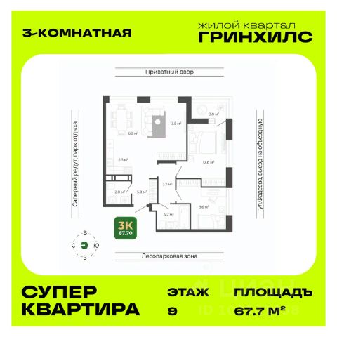Продается 3-к квартира в ЖК "Гринхилс". Отделка - whitebox, санузел - под ключ. Общая площадь квартиры — 62 кв. м, этаж 5 из 18. Тип дома — монолитный. Цена указана при 100% оплате. ЖК "Гринхилс" — жилой квартал комфорт-класса в выгодной локации микрорайона Зеленый угол: развивающегося современного жилого кластера во Владивостоке, внутри которого реализуются проекты нового поколения, преобразуя город. Полный набор необходимой инфраструктуры, транспортная доступность, исторические места города в шаговой доступности, а также окружение леса — все это и есть современный Зеленый угол. ТРАНСПОРНАЯ ДОСТУПНОСТЬ - 15 минут до центра; - 17 минут до ж/д вокзала; - 10 мин до пляжа Патрокл*; - 30 минут до автовокзала; - 50 минут до аэропорта. *В конце 2025 года планируется ввод дороги, соединяющей район с объездной Седанка-ДеФриз-Патрокл. ПЛАНОВЫЙ ВВОД В ЭКСПЛУАТАЦИЮ - 1 корпуса — 2 квартал 2026 года; - 2 и 3 корпусов — 2 квартал 2027 года. АРХИТЕКРУРНЫЕ И ИНЖЕНЕРНЫЕ РЕШЕНИЯ, ПОВЫШАЮЩИЕ КАЧЕСТВО ЖИЗНИ - Приватный безопасный каскадный двор-парк площадью более 4000м2, спроектирован как отдельный архитектурный объект с зонами, включающими в себя целый комплекс оборудования для детей и взрослых, озеленением и современным освещением, благодаря которому будет приятно гулять и отдыхать во дворе в вечернее и ночное время; - Доступ на территорию всего ЖК только для вас и ваших гостей; - Видеонаблюдение по периметру всего ЖК, безбарьерный доступ в дом с обеих сторон и современная домофония; - Дизайнерская отделка мест общего пользования, чтобы было приятно каждый раз, когда приходишь к себе домой; - Предусмотрено место для консьержа, а также туалеты на первых этажах для вашего комфорта; - Колясочные и три современных лифта c прямым доступом к индивидуальным кладовым и паркингу; - Трехэтажный приватный паркинг в 3-м корпусе: широкие проезды, индивидуальные машиноместа, безопасное и комфортное хранение вашего автопарка. МНОЖЕСТВО ПЛАНИРОВОЧНЫХ РЕШЕНИЙ И ВАРИАНТОВ ОТДЕЛКИ - Студии, 1к, 2к, 3к, 4к и квартиры евро-формата спроектированных по стандарту "Эргом2етрика", учитывающие различные сценарии жизни. Для вашего удобства для каждого варианта планировки вы можете выбрать подходящую готовности квартиры: - Без отделки; - Без отделки с выполненной стяжкой пола; - Whitebox — квартира, готовая к декорированию: стены подготовлены дя отделки, проведена электрика с учетом рекомендаций по расстановке мебели и бытовой техники, выровнен пол, в каждой квартире установлена взломостойкая входная дверь; - Whitebox plus — квартира, готовая к декорированию, в которой выполнена полностью отделка санузла; - Квартира с полностью готовой современной отделкой в светлых тонах. Во всех квартирах лоджии имеют панорамное остекление. Для вашего удобства в 1м корпусе открыт демонстрационный этаж, где вы сможете вживую увидеть все варианты отделок квартир. Записывайтесь на показ по контактам в этом объявлении.