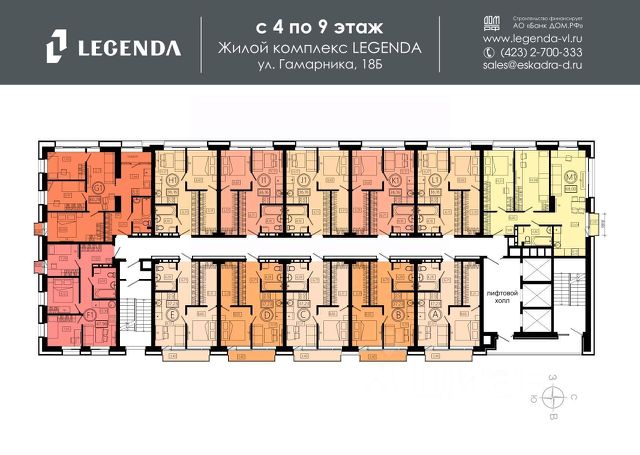 ЖИЛОЙ КОМПЛЕКС ЛЕГЕНДА История комфорта твоей семьи. ЖК "ЛЕГЕНДА" — это камерный жилой комплекс премиального качества, расположенный в одном из самых комфортных и экологически благоприятных районов Владивостока. Это не просто квадратные метры, а приглашение к новому образу жизни, где продуманная архитектура встречается с ежедневной близостью к морю, а высокий статус жилья сочетается с уютом зеленого, тихого района. Это история о переменах к лучшему для вас и вашей семьи. Архитектура комплекса, уникальная для Владивостока, гармонично соединяет классические традиции и современный подход. Качественные материалы отделки фасада подчеркивают высокий уровень проекта. Но главное внутри — пространство, которое дышит свободой. Высота потолков от 2,8 до 3,2 метров наполняет каждую квартиру воздухом и светом, создавая ощущение настоящей роскоши и простора, а панорамные окна открывают захватывающие виды на Амурский залив. ЛОКАЦИЯ. ЗЕЛЕНЫЙ РАЙОН У МОРЯ ЖК "ЛЕГЕНДА" расположен в сердце любимого жителями района Столетия. Это место, где можно наслаждаться тишиной и свежим морским воздухом, не отрываясь от благ цивилизации. Тишина, зелень и море в шаговой доступности. В отличие от шумных магистралей, здесь царит атмосфера курорта и рекреации. При этом район обладает "богатой" и полностью готовой инфраструктурой. В пешей доступности — лучшие школы и детские сады, поликлиники, торговые центры и множество магазинов. Вам не нужно ждать, пока построят социальные объекты — они уже работают и ждут вас. ПРЕИМУЩЕСТВА ЖК ЛЕГЕНДА: ГОТОВОЕ ЖИЛЬЕ У МОРЯ Срок сдачи — II квартал 2026 г. Вы покупаете не обещания на чертежах, а реальный проект, который уже начал подготовку к сдаче. Это значит, что вы получите ключи уже в этом году и сможете начать новую жизнь, не тратя годы на ожидание и съемное жилье. ПОЧЕМУ ЭТО ВЫГОДНО СЕГОДНЯ? Покупать квартиру на стадии бетона и ждать — больше невыгодно. Держать деньги в банке, наблюдая за ростом цен и инфляцией, — тоже невыгодно. Мы предлагаем стоимость квадратного метра как у домов на начальном этапе строительства, но вы получаете готовый продукт уже в 2026 году. Инфраструктура для полноценной жизни: - Закрытая придомовая территория: детские и спортивные площадки расположатся на стилобате дома. Доступ к ним будет только у резидентов, чтобы ваши дети могли гулять в полной безопасности. - Пространство, продуманное до мелочей: четырехуровневый паркинг на 118 мест избавит двор от машин, а прямой доступ на лифте из паркинга в вашу квартиру создаст бесшовный переход ("машина-дом"). Здесь же предусмотрены индивидуальные кладовые для сезонных вещей, шин или спортивного инвентаря, освобождая пространство в квартире. СЕРВИС, БЕЗОПАСНОСТЬ И ЗАБОТА О ВАС Мы создаем условия для вашего спокойствия и комфорта. ЖК "ЛЕГЕНДА" — это безопасная среда для жизни: - Системы безопасности: видеонаблюдение и контроль доступа обеспечивают приватность. - Забота о вас: чтобы ваше новоселье началось с абсолютной чистоты, мы дарим вам сертификат на клининг. Мы це
