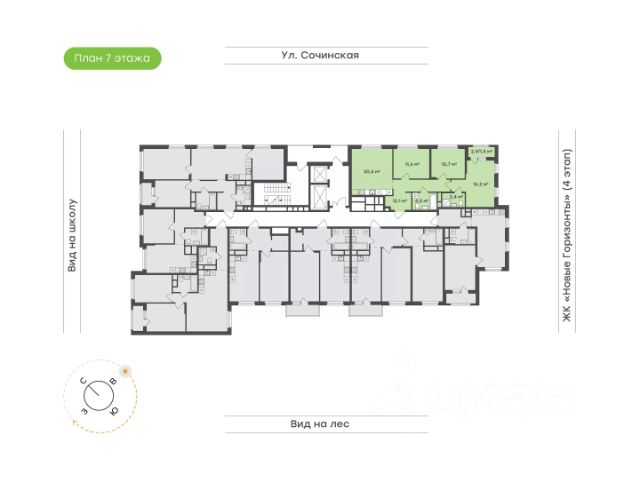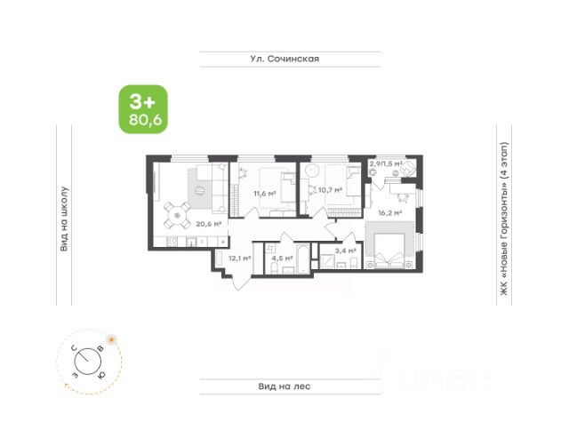Вид на морские бухты и закаты Коридор 5,4 кв.м. с местом под шкаф-купе для утренних прощаний и радостных вечерних встреч Кухня-гостиная 17,8 кв.м. для самых смелых кулинарных экспериментов Раздельные санузел 3,7 кв.м. и ванная 4 кв.м. для удобства большой семьи Одна детская 10,3 кв.м. с видом на лесной массив с пространством для учёбы и игр Вторая детская 10,4 кв.м. с выходом на балкон и видом на морские пейзажи Спальня 11,5 кв.м. для тихого уединения и наслаждения видами на природу, море и закаты