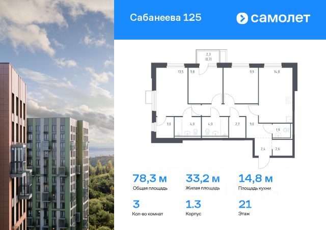 Предлагается 3-комнатная квартира комфорт-класса 77,6 кв.м в корпусе 1.3 на 9 этаже, в ЖК "Сабанеева 125" Квартира без отделки. Доступность опции "отделка" и возможность комплектации мебелью и декором уточняйте у застройщика. Приобрести квартиру возможно по специальным акциям от застройщика, с текущими условиями акций можно ознакомиться в блоке "Акций". Цена динамическая и может отличаться, уточняйте актуальность у застройщика. В жилом комплексе "Сабанеева 125" вы ежедневно будете наслаждаться видами сопок. Холмистый рельеф защищает территорию от ветра. Комплекс расположен в Первореченском районе Владивостока, всего в 20 минутах на машине до центра города. На первых этажах откроются супермаркеты, кафе и пекарни. Для малышей — детский сад в 2 минутах пешком и школа в 10 минутах. За 6 минут можно доехать до Нагорного парка, а за 15 минут — до набережной Цесаревича с панорамой Золотого моста. Комплекс состоит из 3 монолитных домов высотой 25 этажей с фасадами, дизайн которых вдохновлен птицами Дальнего Востока. Дворы оформлены как сад с дальневосточной флорой, есть смотровые площадки, скалодром, перголы и игровые зоны для детей. Подземный паркинг — трехуровневый. В сквозные подъезды без ступеней и с помещением для колясок удобно заходить. В жилом комплексе "Сабанеева 125" есть квартиры с индивидуальными зелеными террасами, увеличенными окнами и панорамными балконами для чаепитий с видом на сопки и залив.