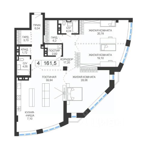 Продаётся 4-комнатная квартира в строящемся доме (Дом 1), срок сдачи: IV-кв. 2025, общей площадью 161.5 кв.м., на 14 этаже. ЖК представляет собой футуристический архитектурный ансамбль, состоящий из двух башен высотой 24 этажа и монументальной стилобатной части, на 5 этажах которой будут располагаться парковочная зона, а также современный торговый центр. Несмотря на слегка дерзкий вид башен, стремительно взмывающих вверх, они прекрасным образом гармонируют с окружающим пространством: солнечные лучи, играющие на зеркальной поверхности фасада, и отражающиеся на ней облака создают фантастический пространственный эффект! Высота наземной части зданий составляет 75 м., общая площадь насчитывает около 40 000 кв. м. - всё это 399 апартаментов свободной планировки, площадью от 97 до 200 кв. м. 192 апартамента. Обязательным условием при проектировании комплекса стало использование высококачественных современных технологий и материалов, проверенных не только мировыми лидерами в области строительства, но и лично нами в ходе реализации других проектов: - Технология муфтовых соединений арматуры каркаса - Стоечно-ригельные фасады SCHUECO - Использование альтернативных источников энергии для освещения территории благоустройства комплекса, а также мест общего пользования - Электронная система вентиляции и кондиционирования