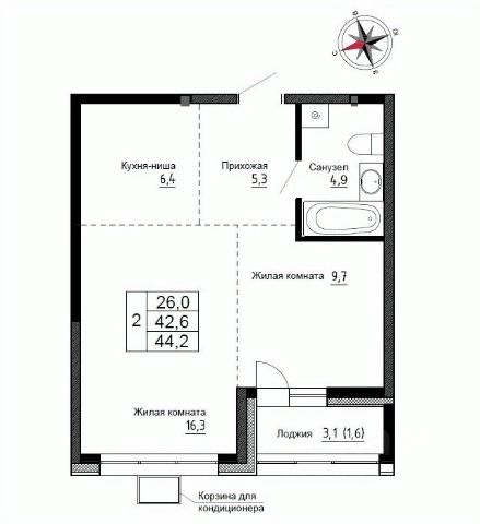 Продаётся 2-комнатная квартира в строящемся доме (Дом 2), срок сдачи: III-кв. 2026, общей площадью 44.2 кв.м., на 1 этаже. ЖК "Новый" - это: 2 дома с авторской архитектурой высотой 13 жилых этажей;Семейные 2-комнатные квартиры улучшенной планировки;Витражное остекление лоджий; 2 скоростных бесшумных лифта в каждом доме;Кладовые на нижних этажах;Открытая автостоянка;Благоустроенный двор;Современные системы безопасности и пожаротушения;Централизованное отопление;Индивидуальные счетчики на тепло и воду в каждой квартире.Уединенный семейный квартал, расположенный в живописном уголке экологически чистого района посёлка Новый. Здесь дома окружены небольшим лесным массивом, что создает особую атмосферу уюта и комфорта. Вся необходимая инфраструктура в шаговой доступности. ЖК "Новый" отличается гармоничной архитектурой, которая вписывается в окружающую природную среду. Большое значение уделено концептуальному благоустройству дворовой территории, чтобы жители могли наслаждаться не только красивыми видами, но и комфортным пространством для отдыха и досуга. Безопасность, современные входные группы и многообразие планировочных решений - всё это жилой комплекс "Новый".