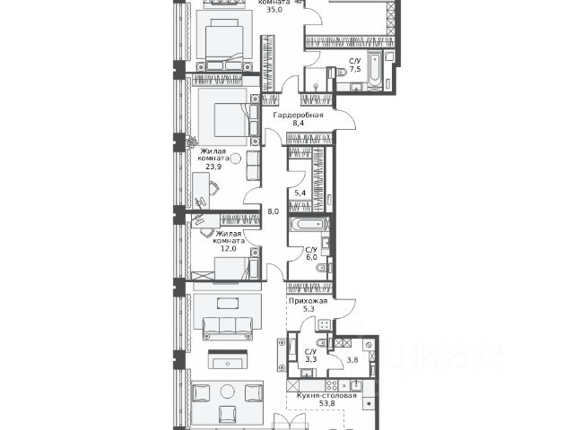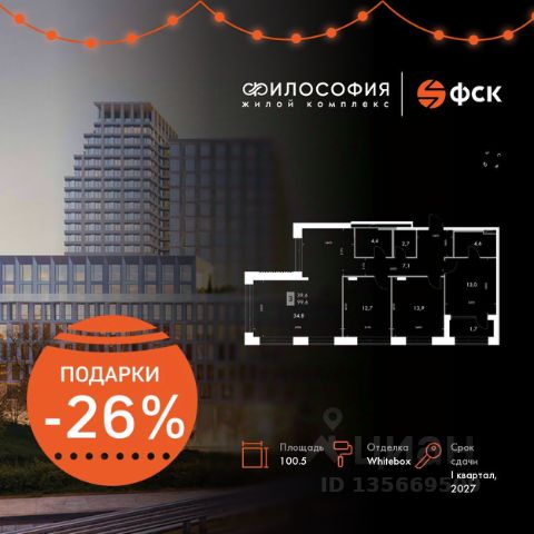 DNV-05-03-03-004-146 Просторная 4-комнатная квартира евроформата с повышенной инсоляцией и предчистовой отделкой в жилом комплексе "ДОМ на Востоке". Общая площадь 100,9 м2. Срок сдачи 1 кв. 2027 г. Монолитный дом. "ДОМ на Востоке" жилой квартал с авторской архитектурой от известного бюро KAMEN, благоустроенной территорией и собственной развитой инфраструктурой. Это флагманский проект от государственного застройщика ДОМ.РФ Девелопмент, расположенного в сердце живописной бухты Патрокл. Проект находится в перспективном, быстроразвивающемся районе города со всей инфраструктурой на берегу залива. Всего 8 минут пешком и вы на Леопардовой набережной совершаете променад или любуетесь завораживающими закатами и рассветами. До центра города и крупных торговых центров легко добраться за 20 минут на автомобиле. Преимущества квартиры - Современная планировка евроформата - Высокий потолок 3,9 м в чистоте - 2 санузла - Повышенная инсоляция 2 окна в спальне, 2 окна в кухне-гостиной - Гардеробная комната - Две корзины для кондиционеров Отделка: В квартире будет выполнена предчистовая отделка. - Возведены перегородки из керамзитобетонных блоков - Произведена разводка электричества - Трубы отопления проведены внутри стяжки пола, выводы под радиаторы расположены на стене - Оштукатурены стены - Выполнена стяжка пола - Установлены радиаторы с терморегулятором - Выполнена шумоизоляция пола - Установлены окна с двухкамерными стеклопакетами и металлическая входная дверь - В квартиру заведен интернет-кабель - Выведены коммуникации для установки кондиционера К моменту выдачи ключей все шумные работы будут завершены. Вам останется самая приятная часть ремонта выбор финишных отделочных материалов, сантехники, мебели и аксессуаров. Инфраструктура На первых этажах домов будет все необходимое для жизни: магазины, кафе, аптеки, салоны красоты и многое другое. А для семей с детьми предусмотрены детские сады, безопасные игровые площадки и игровые комнаты. Паркинг: подземный отапливаемый с видеонаблюдением Для удобства жителей комплекса предусмотрен теплый паркинг в доме. Теперь не придется искать место для парковки, а также чистить автомобиль от снега или долго прогревать его в холодное время года. В паркинге также расположены кладовые помещения для хранения сезонных вещей и спортивного инвентаря. Условия покупки Продажа от надёжного государственного застройщика ДОМ.РФ Девелопмент с использованием эскроу-счетов. 100% оплата или ипотека. Сейчас действуют особые предложения по льготной ипотеке на период строительства. Продам 4-комнатную квартиру от застройщика в Владивостоке.