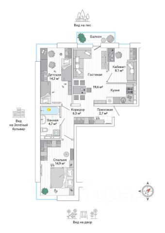 Строим Владивосток, каким он должен быть В чем уникальность R4? Мультиформатный жилой квартал с общей премиальной инфраструктурой В жилом квартале есть жилье разного уровня - от практичного "комфорта" и "комфорт-плюс" до квартир класса "бизнес" и даже "премиум". Поэтому архитектура, инженерное наполнение, благоустройство... вообще каждая деталь квартала, от детских площадок до отделки мест общего пользования - всё соответствует высоким требованиям покупателей. Но это общая инфраструктура. Доступная любому резиденту квартала, независимо от выбранной им квартиры. Рядом с кварталом R4 расположены новейшие жилые комплексы. Старого жилья там просто нет, каждый дом "с иголочки". Новые гладкие автодороги, торговые центры, детские сады и школы. Несмотря на обособленность территории, Зеленый угол обеспечивает легкий доступ ко всей инфраструктуре Владивостока. 2 минуты до детского сада 15 минут до Золотого моста 20 минут до ЖД вокзала 20 минут до Русского моста 45 минут до аэропорта Преимущества Прогрессивная архитектура, разработанная под ландшафт и рельеф участка Удобная и безопасная система передвижения внутри жилого квартала, минуя автомобильный трафик. Дети и взрослые не пересекают дорогу Собственный закрытый парк для жителей квартала "Дворы без машин", гриль-зоны, спортивные и детские площадки Соседский центр с кафе только для жителей квартала Две эксплуатируемые кровли, лаунж-зоны, коворкинг для жителей квартала Более 100 уникальных планировочных решений — двухуровневые квартиры, с отдельном входом и патио, с приватными террасами, двухэтажные со вторым светом, функциональные студии, евроформат с кухней гостиной, с рабочим кабинетом и др. Лобби с приятным дизайном и атмосферой дома Подземный паркинг, кладовые, колясочные и велосипедные Панорамные окна - увеличенные проемы, низкие подоконники Высота потолков до 4,5 м на первых жилых этажах Три варианта отделки: черновая, предчистовая и полный ремонт Автоматизированные системы учета коммунальных услуг Доступ к видеокамерам для всех жильцов квартала Собственная автомойка в жилом квартале 24/7 Подземный паркинг с лифтом до квартиры 4-комнатная квартира на улице Нейбута в городе Владивосток.