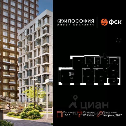 Прямая продажа от застройщика! Жилой Комплекс бизнес-класса. Продаётся 4-к квартира номер 109 общей площадью 101.3 кв.м. на 13-м этаже 14 этажного здания. Отделка Whitebox. Цена с учётом скидки. Особенности квартиры: - Мастер-зона с санузлом и гардеробной. Всё для вашего комфорта и удобства, включая личный санузел и гардероб. - Линейная планировка - максимальная функциональность и удобство. - Просторная ванная - место для расслабления и уединения. - Постирочная с возможностью установки сушилки - удобство для ежедневных дел. - Евроформат - просторное и удобное жилье с отличной планировкой. - Просторная мягкая зона - комфорт и уют для отдыха всей семьи. - Кухня-гостиная - идеальное пространство для встреч с близкими. - Гардеробная - удобство для хранения и организации вещей. - Балкон - открытое пространство для отдыха. - Терраса - место для загара и вечерних посиделок. Квартира с предчистовой отделкой (White box). Вам не придется заниматься черновыми и трудоёмкими работы, а чистовую отделку и дизайн - сделайте на свой вкус. Информация о комплексе: В самом центре Владивостока рождается "Философия" - жилой комплекс бизнес-класса, вдохновлённый идеей гармонии. Семь тематических зданий складываются в единое произведение архитектуры, где каждая деталь продумана для вашего комфорта, вдохновения и покоя. Транспортная доступность: - 15 мин. пешком до Пушкинского театра и музейно-театрального центра на Орлиной сопке - 15 мин. пешком до Набережной Цесаревича - 5-10 мин. на машине до парка Минного городка -