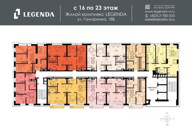 ЖИЛОЙ КОМПЛЕКС ЛЕГЕНДА История комфорта твоей семьи. ЖК "ЛЕГЕНДА" — это камерный жилой комплекс премиального качества, расположенный в одном из самых комфортных и экологически благоприятных районов Владивостока. Это не просто квадратные метры, а приглашение к новому образу жизни, где продуманная архитектура встречается с ежедневной близостью к морю, а высокий статус жилья сочетается с уютом зеленого, тихого района. Это история о переменах к лучшему для вас и вашей семьи. Архитектура комплекса, уникальная для Владивостока, гармонично соединяет классические традиции и современный подход. Качественные материалы отделки фасада подчеркивают высокий уровень проекта. Но главное внутри — пространство, которое дышит свободой. Высота потолков от 2,8 до 3,2 метров наполняет каждую квартиру воздухом и светом, создавая ощущение настоящей роскоши и простора, а панорамные окна открывают захватывающие виды на Амурский залив. ЛОКАЦИЯ. ЗЕЛЕНЫЙ РАЙОН У МОРЯ ЖК "ЛЕГЕНДА" расположен в сердце любимого жителями района Столетия. Это место, где можно наслаждаться тишиной и свежим морским воздухом, не отрываясь от благ цивилизации. Тишина, зелень и море в шаговой доступности. В отличие от шумных магистралей, здесь царит атмосфера курорта и рекреации. При этом район обладает "богатой" и полностью готовой инфраструктурой. В пешей доступности — лучшие школы и детские сады, поликлиники, торговые центры и множество магазинов. Вам не нужно ждать, пока построят социальные объекты — они уже работают и ждут вас. ПРЕИМУЩЕСТВА ЖК ЛЕГЕНДА: ГОТОВОЕ ЖИЛЬЕ У МОРЯ Срок сдачи — II квартал 2026 г. Вы покупаете не обещания на чертежах, а реальный проект, который уже начал подготовку к сдаче. Это значит, что вы получите ключи уже в этом году и сможете начать новую жизнь, не тратя годы на ожидание и съемное жилье. ПОЧЕМУ ЭТО ВЫГОДНО СЕГОДНЯ? Покупать квартиру на стадии бетона и ждать — больше невыгодно. Держать деньги в банке, наблюдая за ростом цен и инфляцией, — тоже невыгодно. Мы предлагаем стоимость квадратного метра как у домов на начальном этапе строительства, но вы получаете готовый продукт уже в 2026 году. Инфраструктура для полноценной жизни: - Закрытая придомовая территория: детские и спортивные площадки расположатся на стилобате дома. Доступ к ним будет только у резидентов, чтобы ваши дети могли гулять в полной безопасности. - Пространство, продуманное до мелочей: четырехуровневый паркинг на 118 мест избавит двор от машин, а прямой доступ на лифте из паркинга в вашу квартиру создаст бесшовный переход ("машина-дом"). Здесь же предусмотрены индивидуальные кладовые для сезонных вещей, шин или спортивного инвентаря, освобождая пространство в квартире. СЕРВИС, БЕЗОПАСНОСТЬ И ЗАБОТА О ВАС Мы создаем условия для вашего спокойствия и комфорта. ЖК "ЛЕГЕНДА" — это безопасная среда для жизни: - Системы безопасности: видеонаблюдение и контроль доступа обеспечивают приватность. - Забота о вас: чтобы ваше новоселье началось с абсолютной чистоты, мы дарим вам сертификат на клининг. Мы це