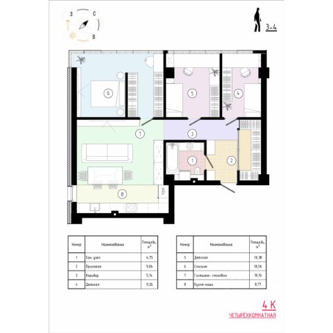 Максимальный комфорт для большой семьи Кухня-столовая 28,8 кв.м станет настоящим сердцем квартиры, где можно готовить семейные завтраки и ужины, а также проводить время в кругу близких людей Две детские комнаты 12,6 кв.м и 10,8 кв.м обеспечат комфорт для развития и игр вашим детям Родительская спальня 11,7 кв.м с выходом на лоджию место для отдыха после рабочего дня и романтических вечеров Гардеробная 4 кв.м в спальне позволит поддерживать порядок в квартире Два санузла для экономии времени всей семьи