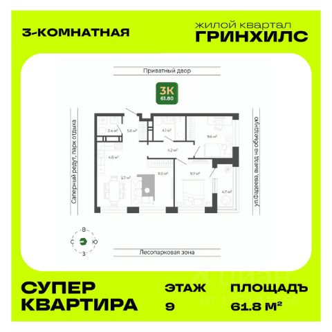 Строим Владивосток, каким он должен быть В чем уникальность R4? Мультиформатный жилой квартал с общей премиальной инфраструктурой В жилом квартале есть жилье разного уровня - от практичного "комфорта" и "комфорт-плюс" до квартир класса "бизнес" и даже "премиум". Поэтому архитектура, инженерное наполнение, благоустройство... вообще каждая деталь квартала, от детских площадок до отделки мест общего пользования - всё соответствует высоким требованиям покупателей. Но это общая инфраструктура. Доступная любому резиденту квартала, независимо от выбранной им квартиры. Рядом с кварталом R4 расположены новейшие жилые комплексы. Старого жилья там просто нет, каждый дом "с иголочки". Новые гладкие автодороги, торговые центры, детские сады и школы. Несмотря на обособленность территории, Зеленый угол обеспечивает легкий доступ ко всей инфраструктуре Владивостока. 2 минуты до детского сада 15 минут до Золотого моста 20 минут до ЖД вокзала 20 минут до Русского моста 45 минут до аэропорта Преимущества Прогрессивная архитектура, разработанная под ландшафт и рельеф участка Удобная и безопасная система передвижения внутри жилого квартала, минуя автомобильный трафик. Дети и взрослые не пересекают дорогу Собственный закрытый парк для жителей квартала "Дворы без машин", гриль-зоны, спортивные и детские площадки Соседский центр с кафе только для жителей квартала Две эксплуатируемые кровли, лаунж-зоны, коворкинг для жителей квартала Более 100 уникальных планировочных решений — двухуровневые квартиры, с отдельном входом и патио, с приватными террасами, двухэтажные со вторым светом, функциональные студии, евроформат с кухней гостиной, с рабочим кабинетом и др. Лобби с приятным дизайном и атмосферой дома Подземный паркинг, кладовые, колясочные и велосипедные Панорамные окна - увеличенные проемы, низкие подоконники Высота потолков до 4,5 м на первых жилых этажах Три варианта отделки: черновая, предчистовая и полный ремонт Автоматизированные системы учета коммунальных услуг Доступ к видеокамерам для всех жильцов квартала Собственная автомойка в жилом квартале 24/7 Подземный паркинг с лифтом до квартиры