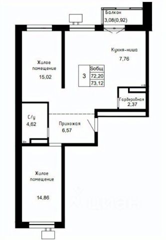 - общая площадь 86 кв. м.