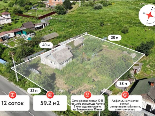 Участок имеет двое откатных ворот и отдельные ворота для подвоза дров и откачки септика. В пешей доступности (15 минут ) ж/д станция Амурский залив. До федеральной трассы, магазина, школы и дет. сада, пешком 15-20 минут по асфальту.