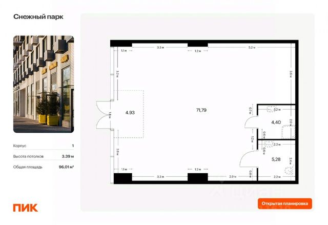 - Общая площадь помещения: 43,9 кв.м.