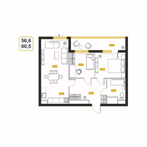 - Всю инфраструктуру для комфортного проживания. На первых этажах домов отведены площади для магазина, кафе, ресторана, отделения банка, аптеки, стоматологии, фитнес-центра, детского сада. Просторная придомовая территория вмещает в себя парковки для жильцов и гостей, детские и спортивные площадки, клумбы и скверы.