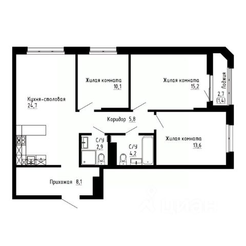 Продаётся квартира свободной планировки в сданном доме (Дом 1), срок сдачи: I-кв. 2024, общей площадью 104.6 кв.м., на 10 этаже. Жилой комплекс "Солярис" представляет собой 25-этажный дом в районе улицы Жигура. Проектом запланировано строительство детских и спортивных площадок, а также зон отдыха. Предусмотрен паркинг. В шаговой доступности от него - магазины, аптека, различные объекты транспортной инфраструктуры, салоны красоты, отделения банков, школы и детские сады.