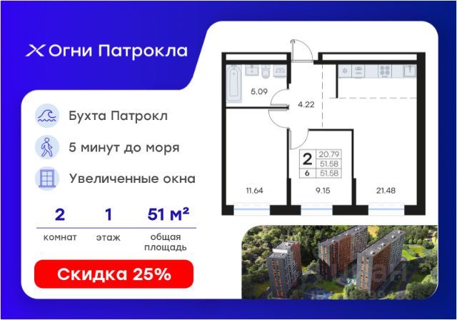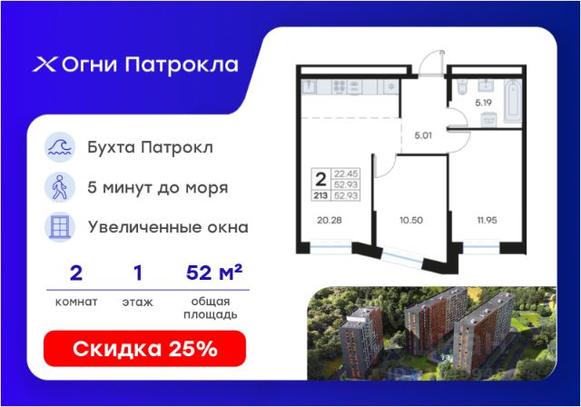 Старт продаж! Первый клубный дом на Патрокле! ID: DNV-08-02-01-002-062 Современная 2 комнатная квартира классического формата в жилом комплексе "ДОМ на Востоке". Срок сдачи IV кв. 2027. "ДОМ на Востоке" жилой квартал с авторской архитектурой от известного бюро KAMEN, благоустроенной территорией и собственной развитой инфраструктурой. Это флагманский проект от государственного застройщика ДОМ.РФ Девелопмент, расположенный в сердце живописной бухты Патрокл. Проект находится в перспективном, быстроразвивающемся районе города со всей инфраструктурой на берегу залива. Всего 8 минут пешком и вы на Леопардовой набережной совершаете променад или любуетесь завораживающими закатами и рассветами. До центра города и крупных торговых центров легко добраться за 20 минут на автомобиле. Особенности квартиры: • мастер-спальня с отдельным санузлом и просторной гардеробной; • отдельная гардеробная комната; • 8 этажей в доме; • 4 квартиры на этаже; • высокие потолки 3,9 м. Квартира сдается без отделки: квартира с входной дверью, окнами, гидроизоляцией пола в мокрых зонах, водопроводом с канализацией, радиаторами, подведенным электричеством с установленным щитком механизации и автоматами. На первых этажах домов будет все необходимое для жизни: магазины, кафе, аптеки, салоны красоты и многое другое. А для семей с детьми предусмотрены детские сады, безопасные игровые площадки и игровые комнаты. Для удобства жителей комплекса предусмотрен подземный отапливаемый паркинг с видеонаблюдением. Теперь не придется искать место для парковки, а также чистить автомобиль от снега или прогревать его в холодное время года. В паркинге также расположены кладовые помещения для хранения сезонных вещей и спортивного инвентаря. Продажа от надёжного государственного застройщика ДОМ.РФ Девелопмент с использованием эскроу-счетов. Различные варианты финансирования покупки: льготные программы ипотеки, рассрочка, 100% оплата. Уточняйте текущие акции у менеджеров жилого комплекса!