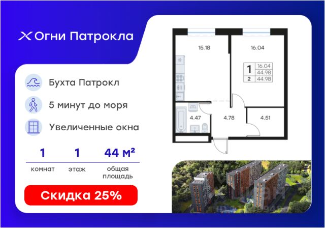 Старт продаж! Первый клубный дом на Патрокле! ID: DNV-08-02-01-003-063 Современная студия в жилом комплексе "ДОМ на Востоке". Срок сдачи IV кв. 2027. "ДОМ на Востоке" жилой квартал с авторской архитектурой от известного бюро KAMEN, благоустроенной территорией и собственной развитой инфраструктурой. Это флагманский проект от государственного застройщика ДОМ.РФ Девелопмент, расположенный в сердце живописной бухты Патрокл. Проект находится в перспективном, быстроразвивающемся районе города со всей инфраструктурой на берегу залива. Всего 8 минут пешком и вы на Леопардовой набережной совершаете променад или любуетесь завораживающими закатами и рассветами. До центра города и крупных торговых центров легко добраться за 20 минут на автомобиле. Особенности квартиры: • 8 этажей в доме; • 4 квартиры на этаже; • высокие потолки 3,9 м. Квартира сдается без отделки: квартира с входной дверью, окнами, гидроизоляцией пола в мокрых зонах, водопроводом с канализацией, радиаторами, подведенным электричеством с установленным щитком механизации и автоматами. На первых этажах домов будет все необходимое для жизни: магазины, кафе, аптеки, салоны красоты и многое другое. А для семей с детьми предусмотрены детские сады, безопасные игровые площадки и игровые комнаты. Для удобства жителей комплекса предусмотрен подземный отапливаемый паркинг с видеонаблюдением. Теперь не придется искать место для парковки, а также чистить автомобиль от снега или прогревать его в холодное время года. В паркинге также расположены кладовые помещения для хранения сезонных вещей и спортивного инвентаря. Продажа от надёжного государственного застройщика ДОМ.РФ Девелопмент с использованием эскроу-счетов. Различные варианты финансирования покупки: льготные программы ипотеки, рассрочка, 100% оплата. Уточняйте текущие акции у менеджеров жилого комплекса!