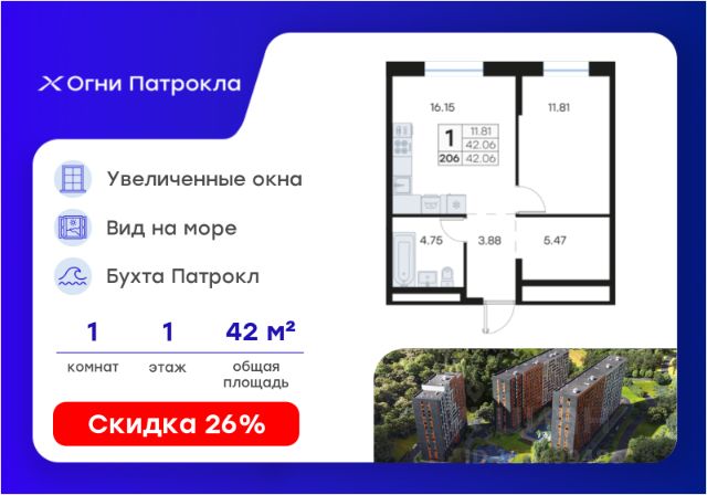 • Квартиры с панорамными видами на бухту Патрокл, маяк Басаргина и остров Русский