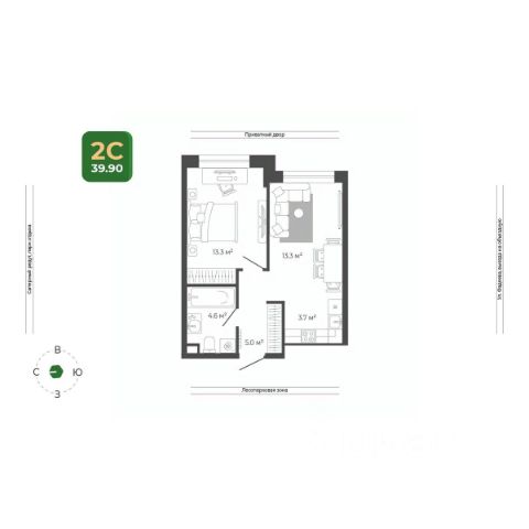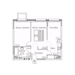 Уютное пространство для самостоятельной жизни Просторная прихожая 5,4 кв.м с местом для шкафа Кухня-столовая 16,7 кв.м место для ваших кулинарных экспериментов и отдыха за домашним кинотеатром Спальня 14,7 кв.м с выходом на лоджию, где можно наслаждаться свежим воздухом и красивым видом на окружающий пейзаж Гардеробная в спальне 2,5 кв.м позволит аккуратно разместить вещи, освободив место в комнате Ванная комната 5,5 кв.м с местом под стиральную машину