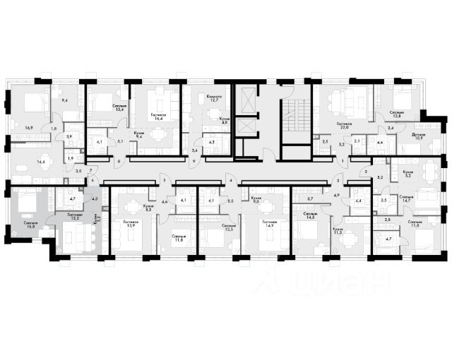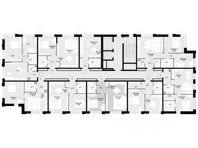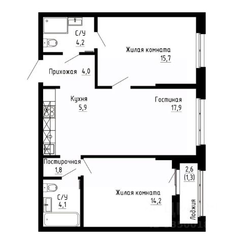 трехкомнатная квартира; угловая; 2 санузла.