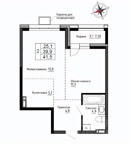Продаётся 2-комнатная квартира в строящемся доме (Дом 1), срок сдачи: III-кв. 2026, общей площадью 41.8 кв.м., на 11 этаже. ЖК "Новый" - это: