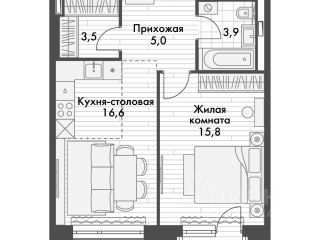 • ✅ Минимальная площадь: 26,6 м²