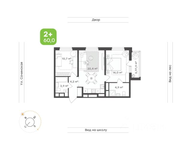 • Планировочные решения под любой жизненный сценарий от 23 до 67 м²