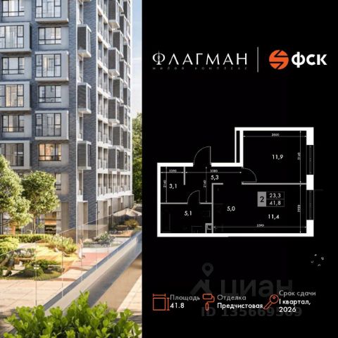 Продается 1-комн. квартира на 11-м этаже в жилом комплексе GloraX Тухачевского — современном проекте нового формата в престижном районе Владивостока. Общая площадь лота составляет 37,72 кв. м, из которых 14,10 кв. м отведено под жилую и 11,68 кв. м под кухонную зону. Номер квартиры - 96.