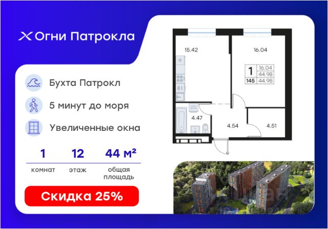 DNV-05-2.1-12-001-075 Просторная 4-комнатная квартира евроформата с повышенной инсоляцией и предчистовой отделкой в жилом комплексе "ДОМ на Востоке". Общая площадь 133,4 м2. Срок сдачи 1 кв. 2027 г. Монолитный дом. "ДОМ на Востоке" жилой квартал с авторской архитектурой от известного бюро KAMEN, благоустроенной территорией и собственной развитой инфраструктурой. Это флагманский проект от государственного застройщика ДОМ.РФ Девелопмент, расположенного в сердце живописной бухты Патрокл. Проект находится в перспективном, быстроразвивающемся районе города со всей инфраструктурой на берегу залива. Всего 8 минут пешком и вы на Леопардовой набережной совершаете променад или любуетесь завораживающими закатами и рассветами. До центра города и крупных торговых центров легко добраться за 20 минут на автомобиле. Преимущества квартиры - Современная планировка евроформата - Высокий потолок 3,3 м в чистоте - 2 санузла - Повышенная инсоляция 2 окна в спальне, 2 окна в кухне-гостиной - Гардеробная комната - Две корзины для кондиционеров Отделка: В квартире будет выполнена предчистовая отделка. - Возведены перегородки из керамзитобетонных блоков - Произведена разводка электричества - Трубы отопления проведены внутри стяжки пола, выводы под радиаторы расположены на стене - Оштукатурены стены - Выполнена стяжка пола - Установлены радиаторы с терморегулятором - Выполнена шумоизоляция пола - Установлены окна с двухкамерными стеклопакетами и металлическая входная дверь - В квартиру заведен интернет-кабель - Выведены коммуникации для установки кондиционера К моменту выдачи ключей все шумные работы будут завершены. Вам останется самая приятная часть ремонта выбор финишных отделочных материалов, сантехники, мебели и аксессуаров. Инфраструктура На первых этажах домов будет все необходимое для жизни: магазины, кафе, аптеки, салоны красоты и многое другое. А для семей с детьми предусмотрены детские сады, безопасные игровые площадки и игровые комнаты. Паркинг: подземный отапливаемый с видеонаблюдением Для удобства жителей комплекса предусмотрен теплый паркинг в доме. Теперь не придется искать место для парковки, а также чистить автомобиль от снега или долго прогревать его в холодное время года. В паркинге также расположены кладовые помещения для хранения сезонных вещей и спортивного инвентаря. Условия покупки Продажа от надёжного государственного застройщика ДОМ.РФ Девелопмент с использованием эскроу-счетов. 100% оплата или ипотека. Сейчас действуют особые предложения по льготной ипотеке на период строительства.