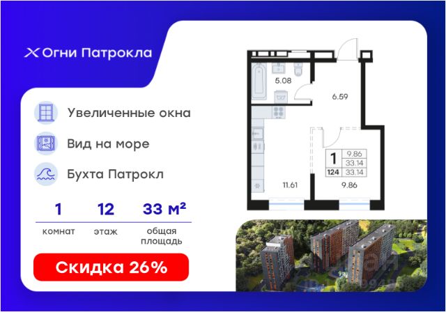 DNV-07-01-12-003-083 Современная 1-комнатная квартира классического формата с большой светлой гостиной в жилом комплексе "ДОМ на Востоке". Срок сдачи 3 кв. 2027 г. Монолитный дом. "ДОМ на Востоке" жилой квартал с авторской архитектурой от известного бюро KAMEN, благоустроенной территорией и собственной развитой инфраструктурой. Это флагманский проект от государственного застройщика ДОМ.РФ Девелопмент, расположенного в сердце живописной бухты Патрокл. Проект находится в перспективном, быстроразвивающемся районе города со всей инфраструктурой на берегу залива. Всего 8 минут пешком и вы на Леопардовой набережной совершаете променад или любуетесь завораживающими закатами и рассветами. До центра города и крупных торговых центров легко добраться за 20 минут на автомобиле. Преимущества лота - Высокий потолок 2,9 м - Гардеробная комната - Большая кухня - 2 санузла панорамные виды - Повышенная инсоляция Отделка: Квартира сдается в черновой отделке. Инфраструктура На первых этажах домов будет все необходимое для жизни: магазины, кафе, аптеки, салоны красоты и многое другое. А для семей с детьми предусмотрены детские сады, безопасные игровые площадки и игровые комнаты. Паркинг: подземный отапливаемый с видеонаблюдением Для удобства жителей комплекса предусмотрен теплый паркинг в доме. Теперь не придется искать место для парковки, а также чистить автомобиль от снега или прогревать его в холодное время года. В паркинге также расположены кладовые помещения для хранения сезонных вещей и спортивного инвентаря. Условия покупки Продажа от надёжного государственного застройщика ДОМ.РФ Девелопмент с использованием эскроу-счетов. 100% оплата или ипотека. Сейчас действуют особые предложения по льготной ипотеке на период строительства.
