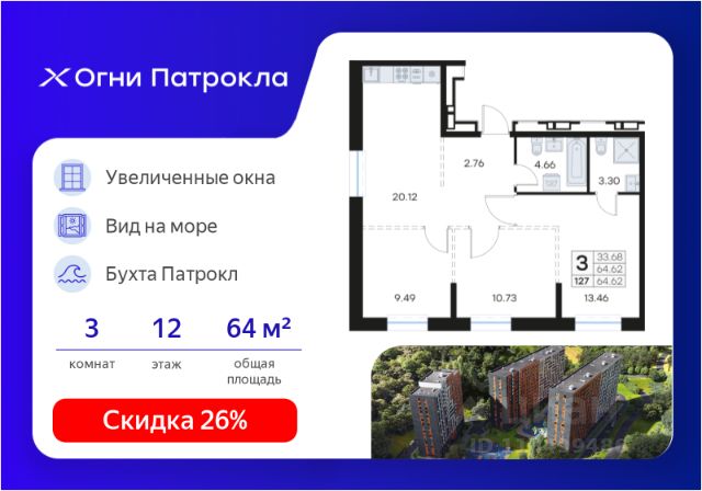DNV-05-2.1-12-001-075 Просторная 4-комнатная квартира евроформата с повышенной инсоляцией и предчистовой отделкой в жилом комплексе "ДОМ на Востоке". Общая площадь 133,4 м2. Срок сдачи 1 кв. 2027 г. Монолитный дом. "ДОМ на Востоке" жилой квартал с авторской архитектурой от известного бюро KAMEN, благоустроенной территорией и собственной развитой инфраструктурой. Это флагманский проект от государственного застройщика ДОМ.РФ Девелопмент, расположенного в сердце живописной бухты Патрокл. Проект находится в перспективном, быстроразвивающемся районе города со всей инфраструктурой на берегу залива. Всего 8 минут пешком и вы на Леопардовой набережной совершаете променад или любуетесь завораживающими закатами и рассветами. До центра города и крупных торговых центров легко добраться за 20 минут на автомобиле. Преимущества квартиры - Современная планировка евроформата - Высокий потолок 3,3 м в чистоте - 2 санузла - Повышенная инсоляция 2 окна в спальне, 2 окна в кухне-гостиной - Гардеробная комната - Две корзины для кондиционеров Отделка: В квартире будет выполнена предчистовая отделка. - Возведены перегородки из керамзитобетонных блоков - Произведена разводка электричества - Трубы отопления проведены внутри стяжки пола, выводы под радиаторы расположены на стене - Оштукатурены стены - Выполнена стяжка пола - Установлены радиаторы с терморегулятором - Выполнена шумоизоляция пола - Установлены окна с двухкамерными стеклопакетами и металлическая входная дверь - В квартиру заведен интернет-кабель - Выведены коммуникации для установки кондиционера К моменту выдачи ключей все шумные работы будут завершены. Вам останется самая приятная часть ремонта выбор финишных отделочных материалов, сантехники, мебели и аксессуаров. Инфраструктура На первых этажах домов будет все необходимое для жизни: магазины, кафе, аптеки, салоны красоты и многое другое. А для семей с детьми предусмотрены детские сады, безопасные игровые площадки и игровые комнаты. Паркинг: подземный отапливаемый с видеонаблюдением Для удобства жителей комплекса предусмотрен теплый паркинг в доме. Теперь не придется искать место для парковки, а также чистить автомобиль от снега или долго прогревать его в холодное время года. В паркинге также расположены кладовые помещения для хранения сезонных вещей и спортивного инвентаря. Условия покупки Продажа от надёжного государственного застройщика ДОМ.РФ Девелопмент с использованием эскроу-счетов. 100% оплата или ипотека. Сейчас действуют особые предложения по льготной ипотеке на период строительства.