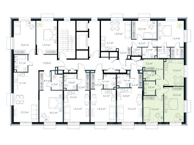 • Планировочные решения под любой жизненный сценарий от 23 до 67 м²
