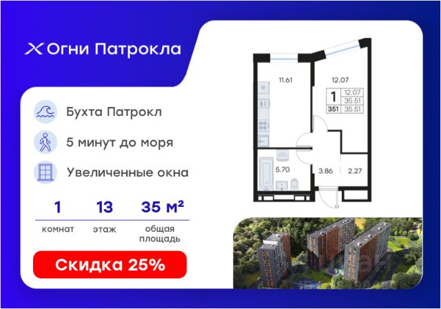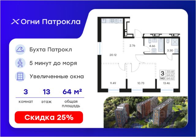 DNV-07-02-13-002-194 Современная 2-комнатная квартира классического формата с большой светлой гостиной в жилом комплексе "ДОМ на Востоке". Срок сдачи 3 кв. 2027 г. Монолитный дом. "ДОМ на Востоке" жилой квартал с авторской архитектурой от известного бюро KAMEN, благоустроенной территорией и собственной развитой инфраструктурой. Это флагманский проект от государственного застройщика ДОМ.РФ Девелопмент, расположенного в сердце живописной бухты Патрокл. Проект находится в перспективном, быстроразвивающемся районе города со всей инфраструктурой на берегу залива. Всего 8 минут пешком и вы на Леопардовой набережной совершаете променад или любуетесь завораживающими закатами и рассветами. До центра города и крупных торговых центров легко добраться за 20 минут на автомобиле. Преимущества лота - Высокий потолок 2,9 м - Большая кухня - 2 санузла панорамные виды - Повышенная инсоляция Отделка: Квартира сдается в черновой отделке. Инфраструктура На первых этажах домов будет все необходимое для жизни: магазины, кафе, аптеки, салоны красоты и многое другое. А для семей с детьми предусмотрены детские сады, безопасные игровые площадки и игровые комнаты. Паркинг: подземный отапливаемый с видеонаблюдением Для удобства жителей комплекса предусмотрен теплый паркинг в доме. Теперь не придется искать место для парковки, а также чистить автомобиль от снега или прогревать его в холодное время года. В паркинге также расположены кладовые помещения для хранения сезонных вещей и спортивного инвентаря. Условия покупки Продажа от надёжного государственного застройщика ДОМ.РФ Девелопмент с использованием эскроу-счетов. 100% оплата или ипотека. Сейчас действуют особые предложения по льготной ипотеке на период строительства.