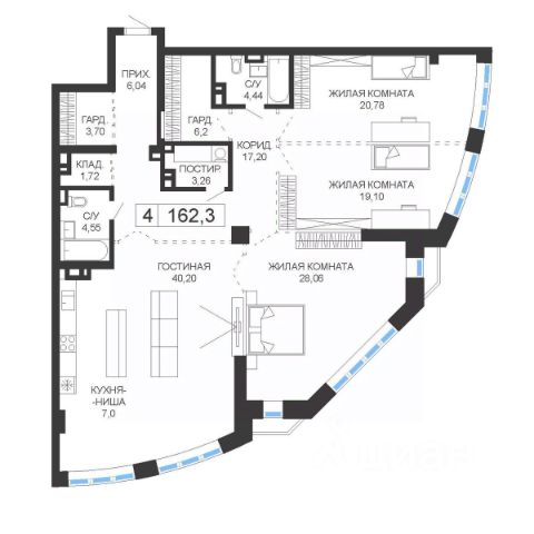 Максимальный комфорт для большой семьи Кухня-столовая 28,8 кв.м станет настоящим сердцем квартиры, где можно готовить семейные завтраки и ужины, а также проводить время в кругу близких людей Две детские комнаты 12,6 кв.м и 10,8 кв.м обеспечат комфорт для развития и игр вашим детям Родительская спальня 11,7 кв.м с выходом на лоджию место для отдыха после рабочего дня и романтических вечеров Гардеробная 4 кв.м в спальне позволит поддерживать порядок в квартире Два санузла для экономии времени всей семьи