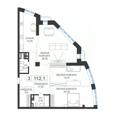 Продаётся 3-комнатная квартира в строящемся доме (Дом 1), срок сдачи: IV-кв. 2025, общей площадью 112.1 кв.м., на 13 этаже. ЖК представляет собой футуристический архитектурный ансамбль, состоящий из двух башен высотой 24 этажа и монументальной стилобатной части, на 5 этажах которой будут располагаться парковочная зона, а также современный торговый центр. Несмотря на слегка дерзкий вид башен, стремительно взмывающих вверх, они прекрасным образом гармонируют с окружающим пространством: солнечные лучи, играющие на зеркальной поверхности фасада, и отражающиеся на ней облака создают фантастический пространственный эффект! Высота наземной части зданий составляет 75 м., общая площадь насчитывает около 40 000 кв. м. - всё это 399 апартаментов свободной планировки, площадью от 97 до 200 кв. м. 192 апартамента. Обязательным условием при проектировании комплекса стало использование высококачественных современных технологий и материалов, проверенных не только мировыми лидерами в области строительства, но и лично нами в ходе реализации других проектов: - Технология муфтовых соединений арматуры каркаса - Стоечно-ригельные фасады SCHUECO - Использование альтернативных источников энергии для освещения территории благоустройства комплекса, а также мест общего пользования - Электронная система вентиляции и кондиционирования