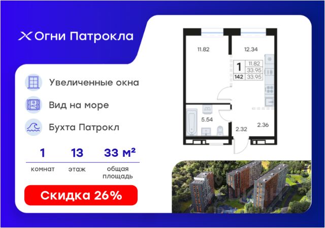 DNV-04-1.1-13-004-049 Светлая уютная студия с большим санузлом и предчистовой отделкой в жилом комплексе "ДОМ на Востоке". Общая площадь 26,1 м2. Срок сдачи 2 кв. 2026 г. Монолитный дом. "ДОМ на Востоке" жилой квартал с авторской архитектурой от известного бюро KAMEN, благоустроенной территорией и собственной развитой инфраструктурой. Это флагманский проект от государственного застройщика ДОМ.РФ Девелопмент, расположенного в сердце живописной бухты Патрокл. Проект находится в перспективном, быстроразвивающемся районе города со всей инфраструктурой на берегу залива. Всего 8 минут пешком и вы на Леопардовой набережной совершаете променад или любуетесь завораживающими закатами и рассветами. До центра города и крупных торговых центров легко добраться за 20 минут на автомобиле. Преимущества лота - Эргономичная планировка - Высокий потолок 2,9 м в чистоте - Большой совмещенный санузел 4,9 м2 - Корзина для кондиционера - Ниша для встроенного шкафа Отделка: В квартире будет выполнена предчистовая отделка. - Возведены перегородки из керамзита-цементных блоков - Оштукатурены стены - Выполнена стяжка пола - Произведена разводка трубопроводов, электричества, вентиляции и кондиционирования. Разводка отопления осуществляется внутри стяжки (горизонтальная), выводы под радиаторы выведены из стены. - Установлены радиаторы с терморегулятором - Выполнена шумоизоляция по полу - Установлены двухкамерные стеклопакеты и металлическая входная дверь - Заведен интернет кабель до слаботочного щита в квартире - Проведены коммуникации под установку кондиционера К моменту выдачи ключей все шумные работы будут завершены. Вам останется самая приятная часть ремонта выбор покрытия стен и пола, сантехники, мебели и аксессуаров. Инфраструктура На первых этажах домов будет все необходимое для жизни: магазины, кафе, аптеки, салоны красоты и многое другое. А для семей с детьми предусмотрены детские сады, безопасные игровые площадки и игровые комнаты. Паркинг: подземный отапливаемый с видеонаблюдением Для удобства жителей комплекса предусмотрен теплый паркинг в доме. Теперь не придется искать место для парковки, а также чистить автомобиль от снега или прогревать его в холодное время года. В паркинге также расположены кладовые помещения для хранения сезонных вещей и спортивного инвентаря. Условия покупки Продажа от надёжного государственного застройщика ДОМ.РФ Девелопмент с использованием эскроу-счетов. 100% оплата или ипотека. Сейчас действуют особые предложения по льготной ипотеке на период строительства.