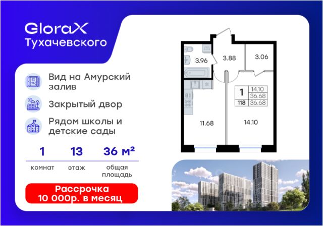 Прямая продажа от застройщика! Жилой Комплекс комфорт-класса. Продаётся квартира-студия номер 138 общей площадью 29.9 кв.м. на 13-м этаже 30 этажного здания. Отделка Whitebox. Цена с учётом скидки. Особенности квартиры: - Линейная планировка - максимальная функциональность и удобство. Квартира с предчистовой отделкой (White box). Вам не придется заниматься черновыми и трудоёмкими работы, а чистовую отделку и дизайн - сделайте на свой вкус. Информация о комплексе: "Флагман" - современный жилой комплекс для тех, кто ценит комфорт, эстетику и личное пространство. Корпуса, выполненные в едином архитектурном коде, создают выразительный силуэт и формируют гармоничное городское пространство. Современная архитектура от одного из ведущих бюро страны сочетает лаконичность форм и внимание к деталям. Приватные дворы, озеленённые улицы и продуманная инфраструктура делают жизнь здесь по-настоящему комфортной.Благодаря удобному расположению и транспортной доступности, вы легко доберётесь в любую часть города. Транспортная доступность: - 9 мин. пешком до детского сада - 7 мин. до школы - 5 мин. до взрослой поликлиники - 1 мин. до автобусной остановки Внутренняя инфраструктура: Каждая деталь продумана для вашего удобства. Для прогулок и отдыха предусмотрен ландшафтный парк и пешеходный бульвар. Закрытые дворы оснащены детскими и спортивными площадками, а в каждом доме предусмотрены кладовые и колясочные. Комфортные гостевые зоны и зоны ожидания создают атмосферу уюта уже с первых шагов в дом. Все корпуса имеют удобный вход без ступеней и пандусов, обеспечивая лёгкий доступ для жителей любого возраста. Для автомобилистов предусмотрен одноэтажный паркинг с автоматической мойкой, а на первых этажах расположены коммерческие помещения, обеспечивающие повседневные потребности жителей.