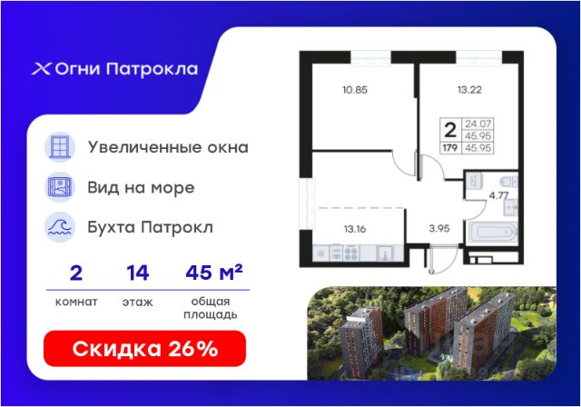 Продаётся 3-комн. квартира площадью 86,4 кв.м на 14 этаже 17 этажного дома (Корпус 1, Секция 1) проекта ПИК Борисенко 48. Светлый просторный подъезд на уровне земли, функциональная планировка, большие окна, c отделкой. "Борисенко 48" - небольшой квартал в Первомайском районе, в 15 минутах пути на автомобиле от центра Владивостока. С верхних этажей откроется живописный вид на город и сопки. В проекте всего четыре дома и подземный паркинг, в который можно будет спуститься на лифте. Высота домов от 17 до 30 этажей - благодаря переменной этажности солнце будет лучше освещать двор и квартиры. На первых этажах откроются пекарни, кафе, магазины и другие сервисы - это удобно, когда внезапно закончится хлеб или захочется побаловать себя горячим кофе. Из каждого дома будет выход в уютный двор-парк - это закрытая территория для отдыха, где растут цветы и деревья, оборудованы детские и спортивные площадки. Рядом с "Борисенко 48" появится также детский сад для 150 малышей. В пешей доступности есть всё необходимое для комфортной жизни: школы, детские сады, поликлиника и магазины. До крупных торговых центров "Калина Молл" и "Луговая", а также супермаркета "Реми" - всего 5 минут на машине. А до озера на Сафонова, которое отлично подходит для прогулок и отдыха, можно дойти пешком за 9 минут. Живописная Леопардовая набережная - в 10 минутах на автомобиле. Из квартала можно будет выехать как на улицу Борисенко, так и на улицу Сафонова. Артикул 918135 (Застройщик ООО "СЗ "Юстина")