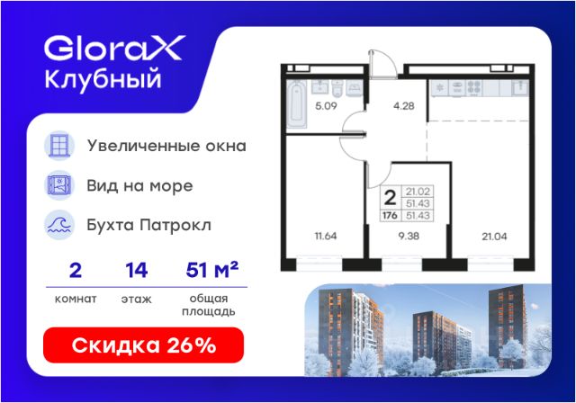 Продаётся 3-комн. квартира площадью 86,4 кв.м на 14 этаже 17 этажного дома (Корпус 1, Секция 1) проекта ПИК Борисенко 48. Светлый просторный подъезд на уровне земли, функциональная планировка, большие окна, c отделкой. "Борисенко 48" - небольшой квартал в Первомайском районе, в 15 минутах пути на автомобиле от центра Владивостока. С верхних этажей откроется живописный вид на город и сопки. В проекте всего четыре дома и подземный паркинг, в который можно будет спуститься на лифте. Высота домов от 17 до 30 этажей - благодаря переменной этажности солнце будет лучше освещать двор и квартиры. На первых этажах откроются пекарни, кафе, магазины и другие сервисы - это удобно, когда внезапно закончится хлеб или захочется побаловать себя горячим кофе. Из каждого дома будет выход в уютный двор-парк - это закрытая территория для отдыха, где растут цветы и деревья, оборудованы детские и спортивные площадки. Рядом с "Борисенко 48" появится также детский сад для 150 малышей. В пешей доступности есть всё необходимое для комфортной жизни: школы, детские сады, поликлиника и магазины. До крупных торговых центров "Калина Молл" и "Луговая", а также супермаркета "Реми" - всего 5 минут на машине. А до озера на Сафонова, которое отлично подходит для прогулок и отдыха, можно дойти пешком за 9 минут. Живописная Леопардовая набережная - в 10 минутах на автомобиле. Из квартала можно будет выехать как на улицу Борисенко, так и на улицу Сафонова. Артикул 918135 (Застройщик ООО "СЗ "Юстина")