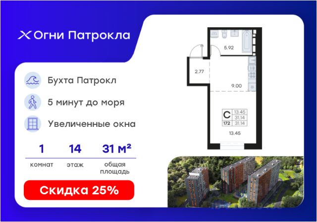 DNV-03-02-14-007-147 Просторная 2-комнатная квартира классического формата с большой кухней и предчистовой отделкой в жилом комплексе "ДОМ на Востоке". Общая площадь 61,6 м2. Срок сдачи 4 кв. 2025 г. Монолитный дом. "ДОМ на Востоке" жилой квартал с авторской архитектурой от известного бюро KAMEN, благоустроенной территорией и собственной развитой инфраструктурой. Это флагманский проект от государственного застройщика ДОМ.РФ Девелопмент, расположенного в сердце живописной бухты Патрокл. Проект находится в перспективном, быстроразвивающемся районе города со всей инфраструктурой на берегу залива. Всего 8 минут пешком и вы на Леопардовой набережной совершаете променад или любуетесь завораживающими закатами и рассветами. До центра города и крупных торговых центров легко добраться за 20 минут на автомобиле. Преимущества лота - Высокий потолок 2,9 м в чистоте - Два санузла - Просторная кухня 12,8 м2 - Повышенная инсоляция 4 окна в гостиной - 2 корзины для кондиционера Отделка: В квартире будет выполнена предчистовая отделка. - Возведены перегородки из керамзита-цементных блоков - Оштукатурены стены - Выполнена стяжка пола - Произведена разводка трубопроводов, электричества, вентиляции и кондиционирования. Разводка отопления осуществляется внутри стяжки (горизонтальная), выводы под радиаторы выведены из стены. - Установлены радиаторы с терморегулятором - Выполнена шумоизоляция по полу - Установлены двухкамерные стеклопакеты и металлическая входная дверь - Заведен интернет кабель до слаботочного щита в квартире - Проведены коммуникации под установку кондиционера К моменту выдачи ключей все шумные работы будут завершены. Вам останется самая приятная часть ремонта выбор покрытия стен и пола, сантехники, мебели и аксессуаров. Инфраструктура На первых этажах домов будет все необходимое для жизни: магазины, кафе, аптеки, салоны красоты и многое другое. А для семей с детьми предусмотрены детские сады, безопасные игровые площадки и игровые комнаты. Паркинг: подземный отапливаемый с видеонаблюдением Для удобства жителей комплекса предусмотрен теплый паркинг в доме. Теперь не придется искать место для парковки, а также чистить автомобиль от снега или прогревать его в холодное время года. В паркинге также расположены кладовые помещения для хранения сезонных вещей и спортивного инвентаря. Условия покупки Продажа от надёжного государственного застройщика ДОМ.РФ Девелопмент с использованием эскроу-счетов. 100% оплата или ипотека. Сейчас действуют особые предложения по льготной ипотеке на период строительства.