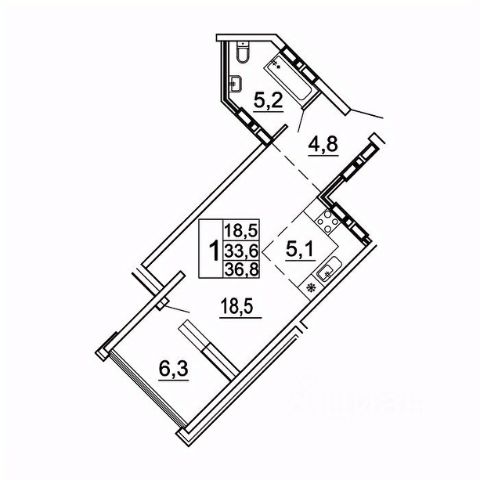 • ✅ Минимальная площадь: 36,8 м²