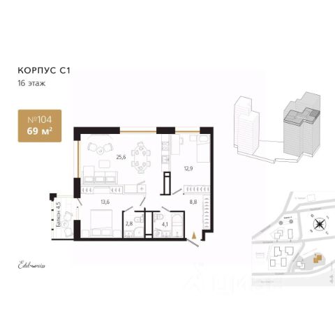 Уютное пространство для самостоятельной жизни Просторная прихожая 5,4 кв.м с местом для шкафа Кухня-столовая 16,7 кв.м место для ваших кулинарных экспериментов и отдыха за домашним кинотеатром Спальня 14,7 кв.м с выходом на лоджию, где можно наслаждаться свежим воздухом и красивым видом на окружающий пейзаж Гардеробная в спальне 2,5 кв.м позволит аккуратно разместить вещи, освободив место в комнате Ванная комната 4,5 кв.м с местом под стиральную машину